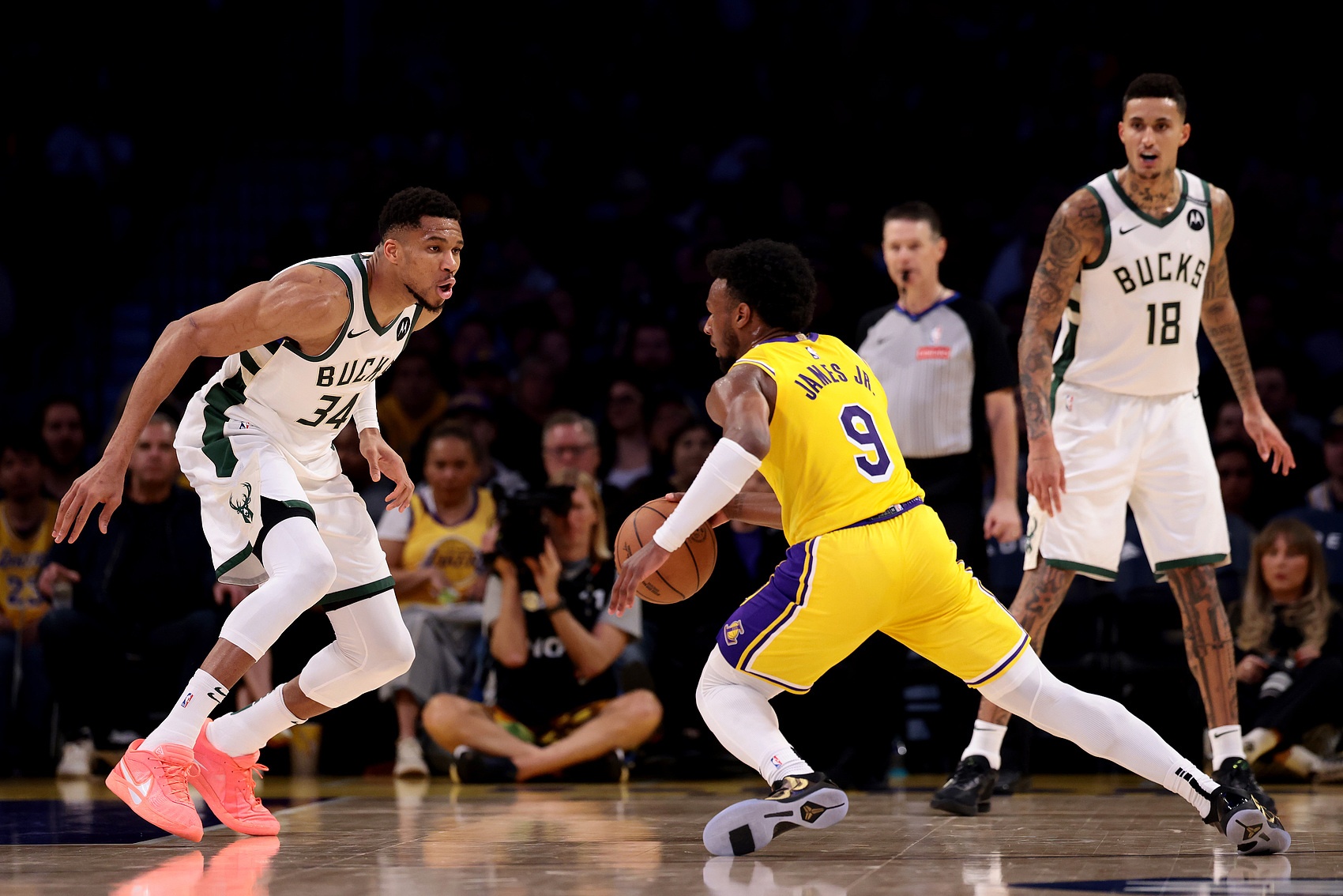 1月10日讯 在今天结束的一场常规赛中,雄鹿以105-101战胜湖人。赛后,字母哥获得詹姆斯的亲签球衣,他甚至穿着这件球衣走进了更衣室,而字母哥哥萨纳西斯则穿着布朗尼的球衣。字母哥之前与布朗尼比赛时(赛季首次交锋时)已经要到了他的球衣。